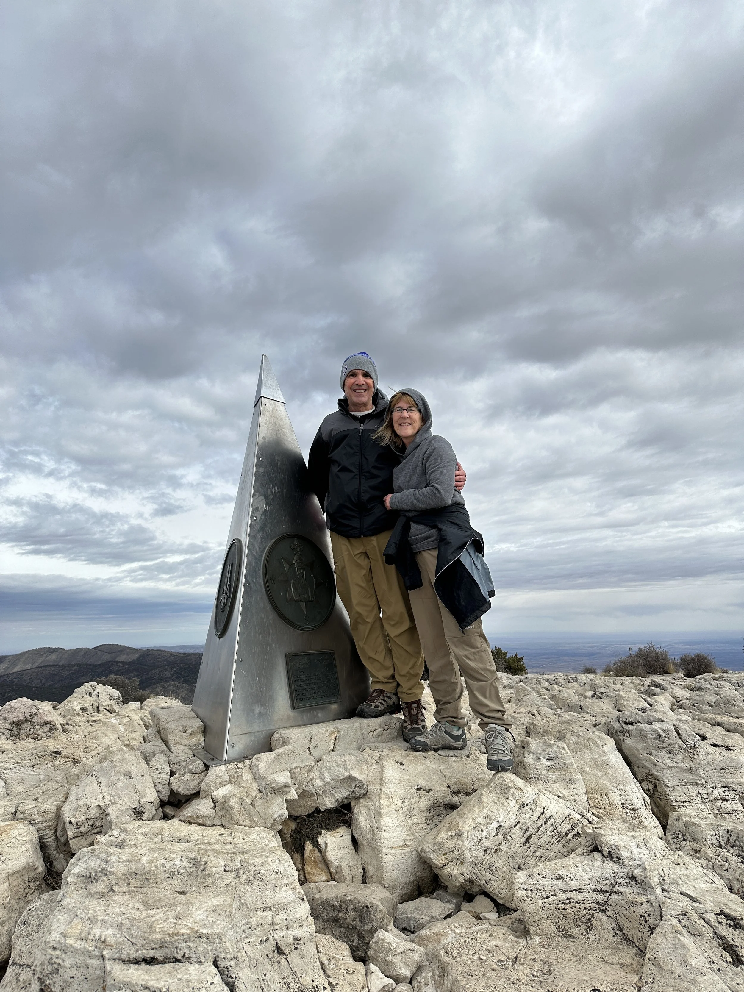 The first mile or so was straight up vertical over a rugged trail. There is beauty all along the trail. The hike offers iconic peaks and a number of hidden gems to experience. Around 6,500 feet up we encountered a snow packed trail on the south face of the mountain. As we wound around the mountain to the north face the sun had the trail cleared of any snow. The final assent to the summit was steep with an angled drop off, but doable for sure. The reward was reaching the summit and the marker signifying you have reached the highest point in Texas. In total the hike was 8.5 miles with 3,012 feet of elevation gain. The total hike took us 5 hours (to reach the top and return back down to the trail head). This was one of the best hikes we have ever experienced.