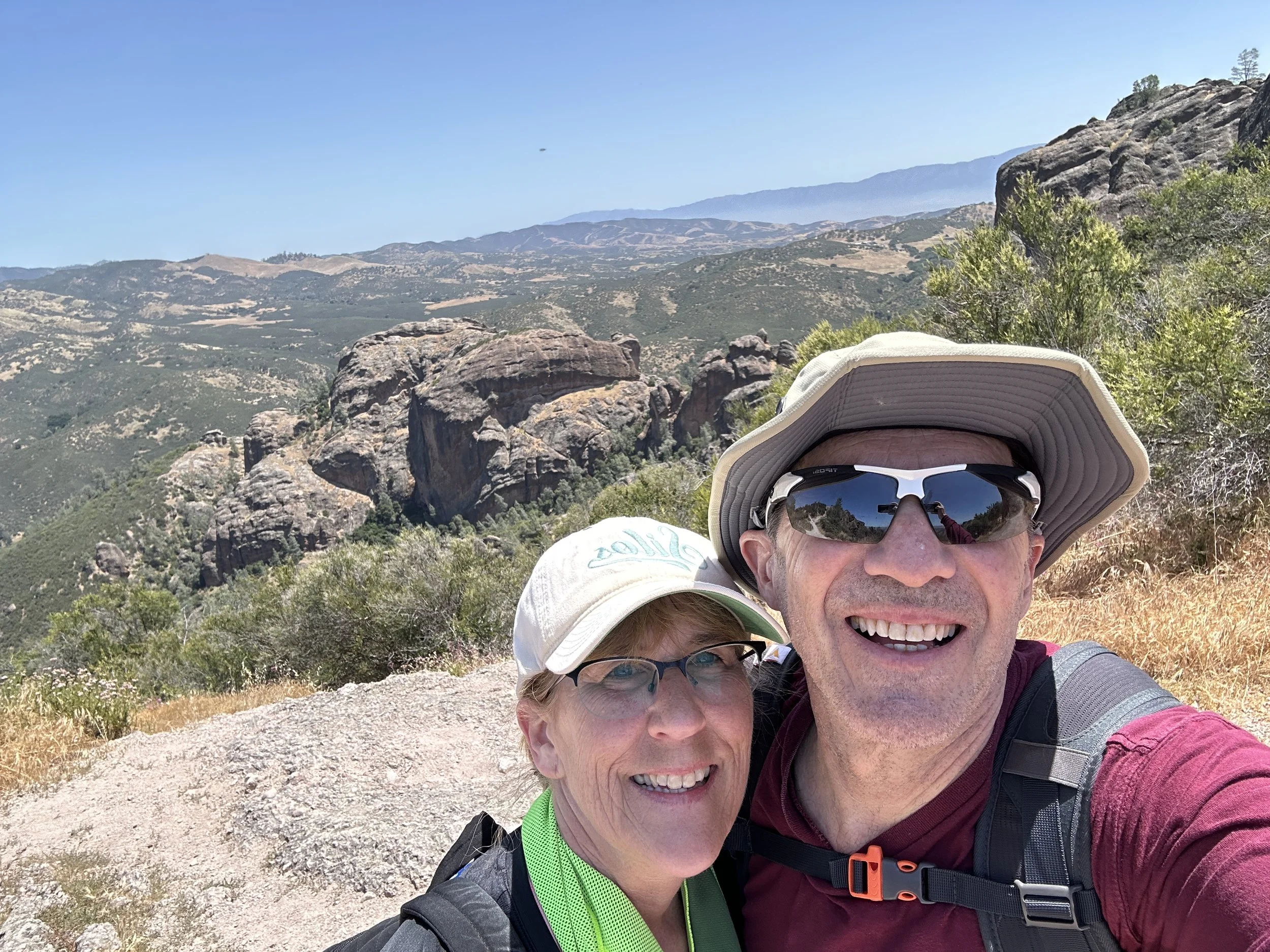 On Tuesday, May 21, 2024 we visited Pinnacles National Park in a mountainous area east of Salinas Valley in Central California. The park itself is divided by rock formations into East and West Divisions connected only by hiking trails. The rock formations provided us with spectacular view and was a haven for skilled rock climbers. The park also features some caves with approximately 13 different species of bats. We did not enter any of the larger caves. For sure a key attraction of the park is the very large California Condors. They are unmistakable with the white color under their wings and a wingspan of nearly 10 feet.