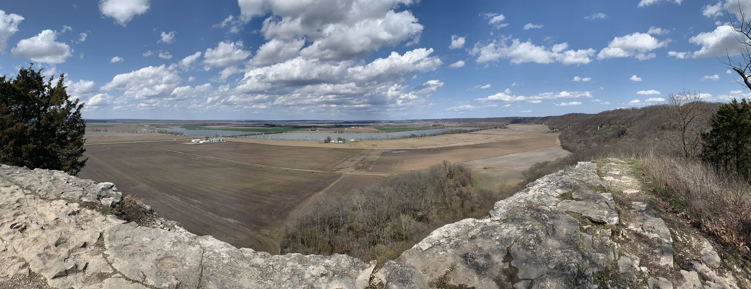 There are 3 trails and trailheads that form a couple of different loops. This allows you to pick your preferred distance and terrain. The Johnson Trail offers and easy 1.3-mile hike along the bottom base of the bluff. The Salt Lick Point Trail is a 1.8-mile loop that provides beautiful views across the Mississippi River flood plain. Note this is a very steep trail. The Newman Trail is a 1.9-mile trail that connects to both the Johnson Trail and the Salt Lick Point Trail. The trail was dirt and some gravel, but overall, not hard to traverse.